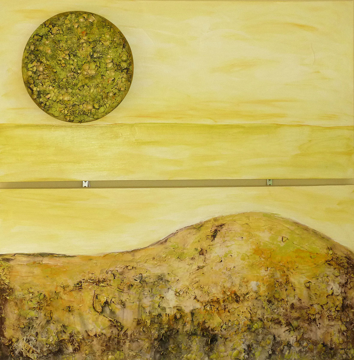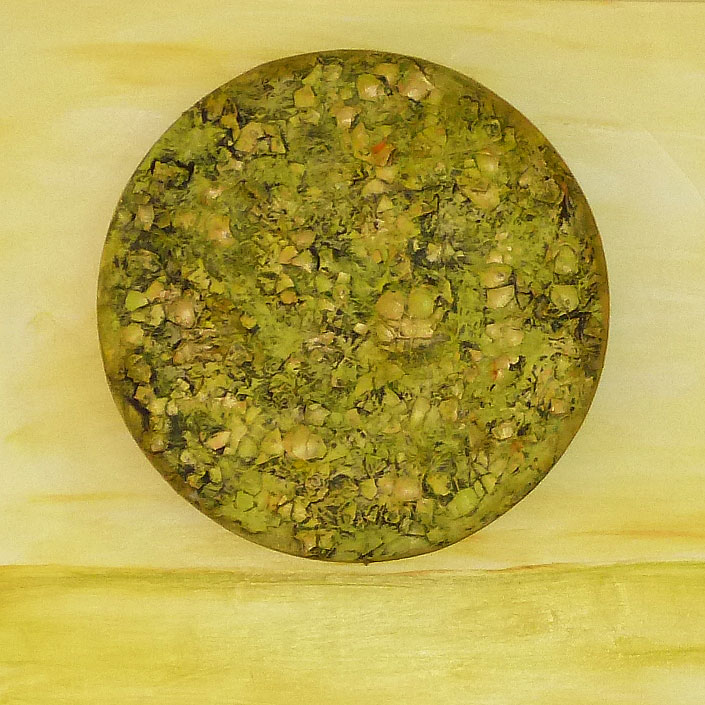 Acrylfarbe, Spachtelmasse, Fixativ, verschiedene Naturmaterialien
