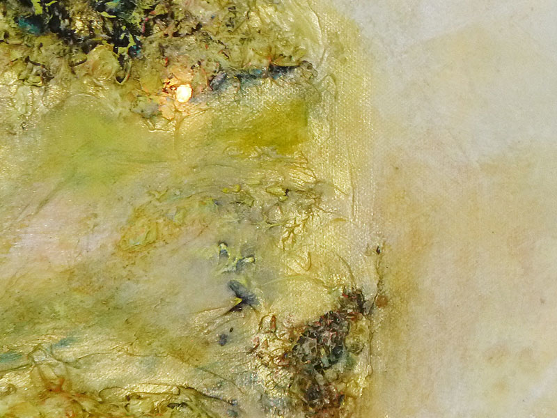 Acrylfarbe, Spachtelmasse, Fixativ, diverse Naturmaterialien