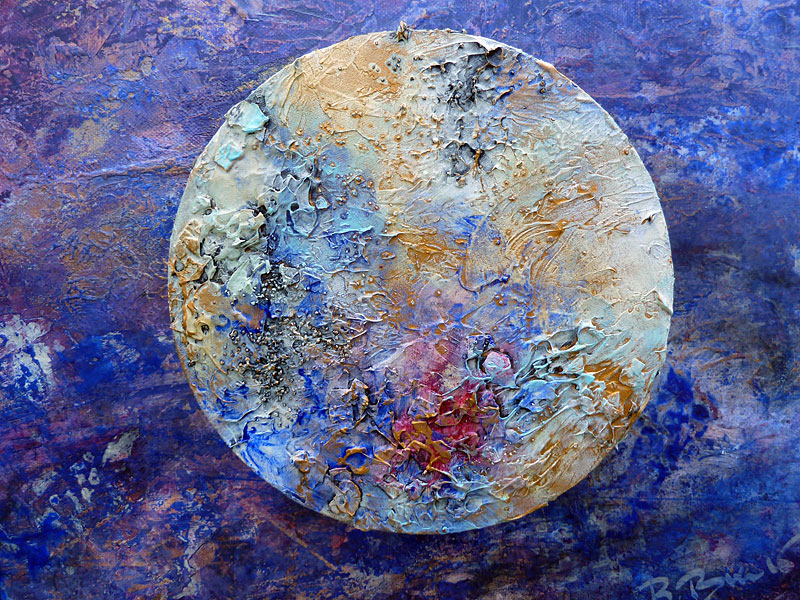 Acrylfarbe, Spachtelmasse, Fixativ, diverse Naturmaterialien