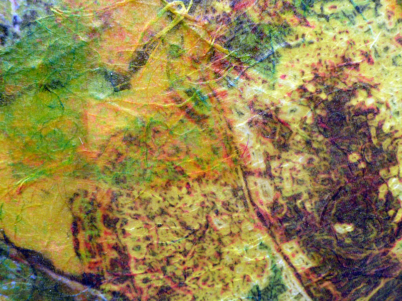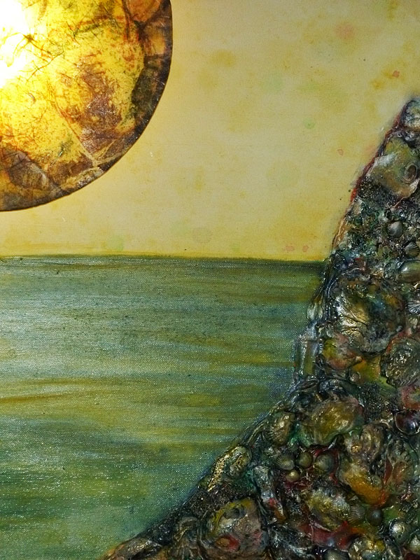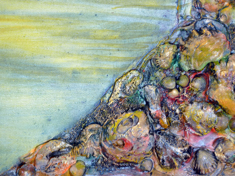 Acrylfarbe, Spachtelmasse, verschiedene Naturmaterialien