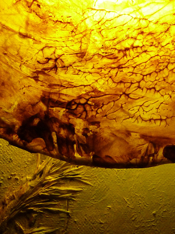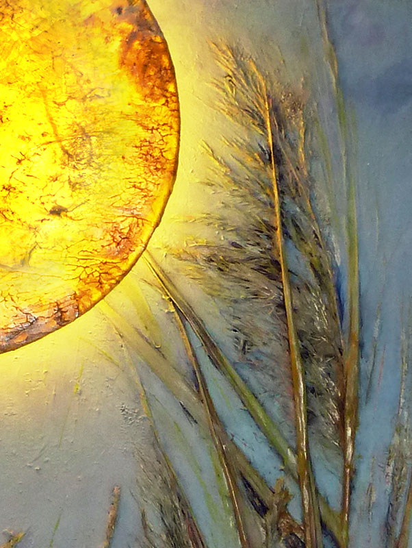 Acrylfarbe, Spachtelmasse, Binder, Strukturgele, Seidenpapier, verschiedene Naturmaterialien
