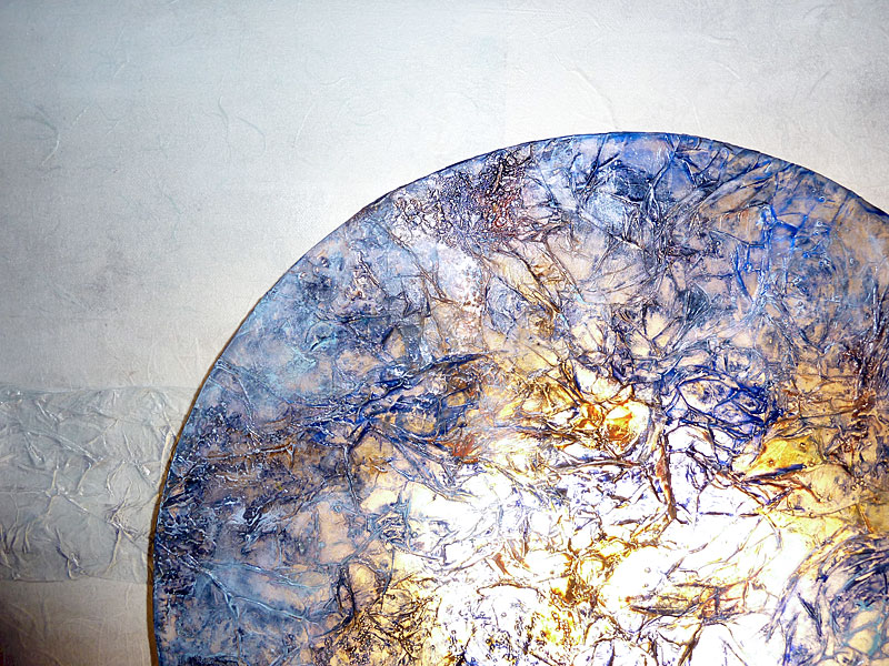 wire ring (Ø 45 cm), lampshade foil, natural paper