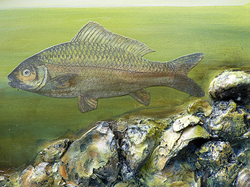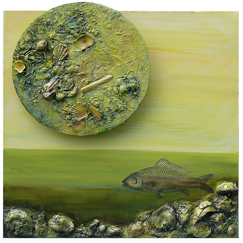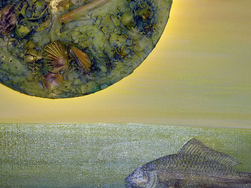 Acrylic paint, binder, golden structure paste, putty, natural paper, various natural materials