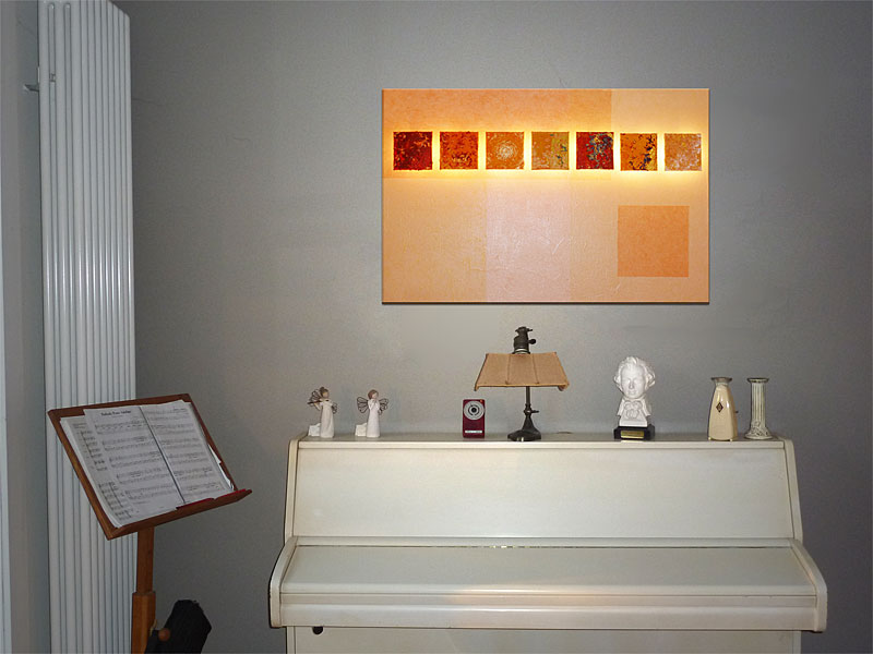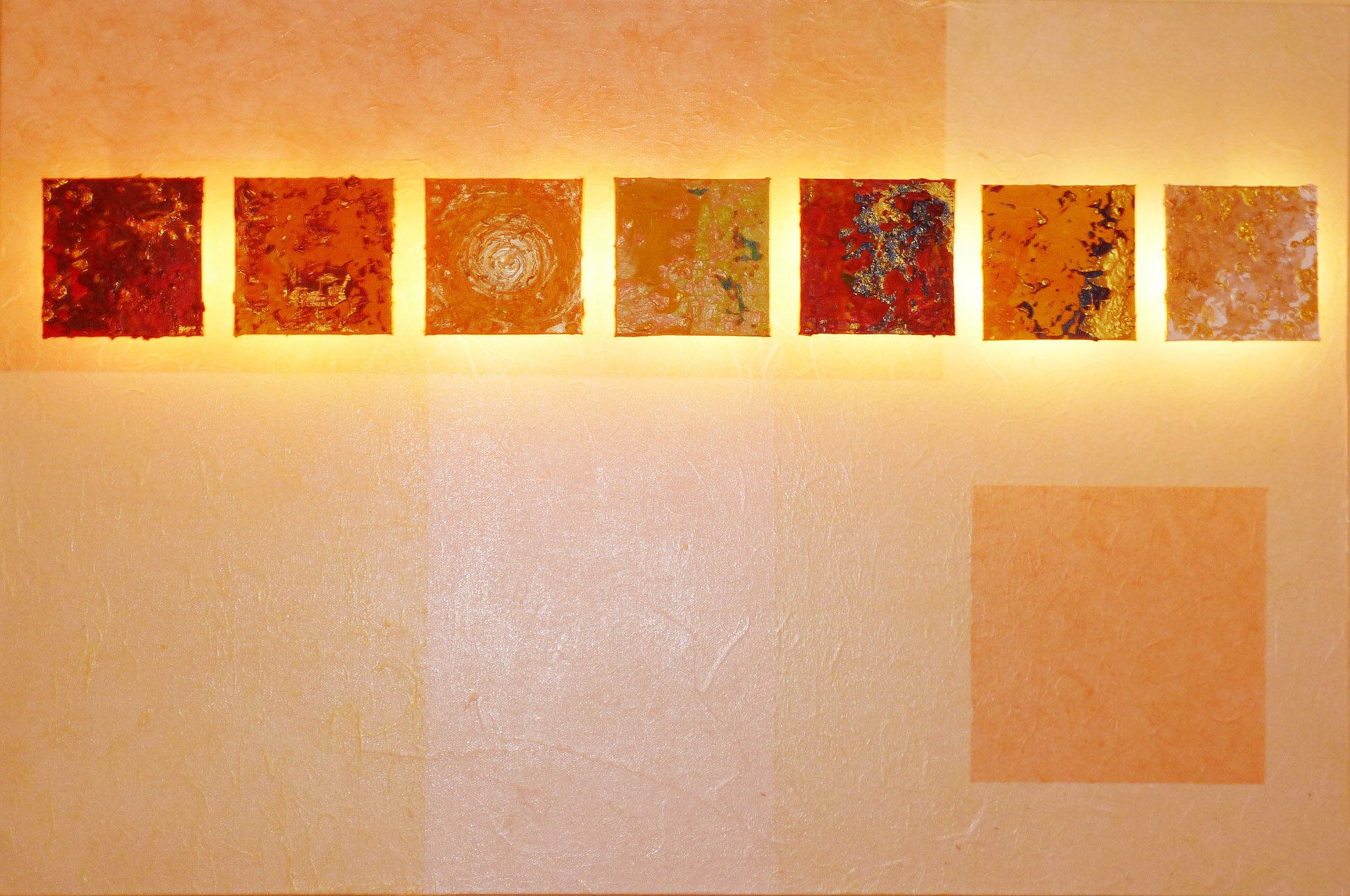 Collage auf Leinwand, Mixed Media, Lichtinstallation