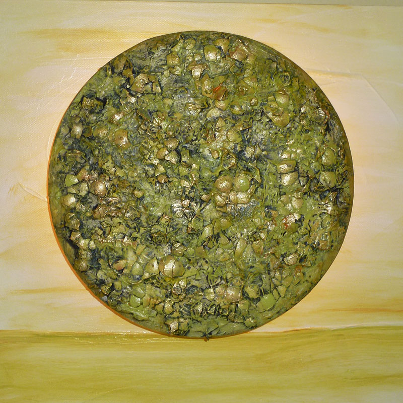 Acrylfarbe, Spachtelmasse, Fixativ, verschiedene Naturmaterialien