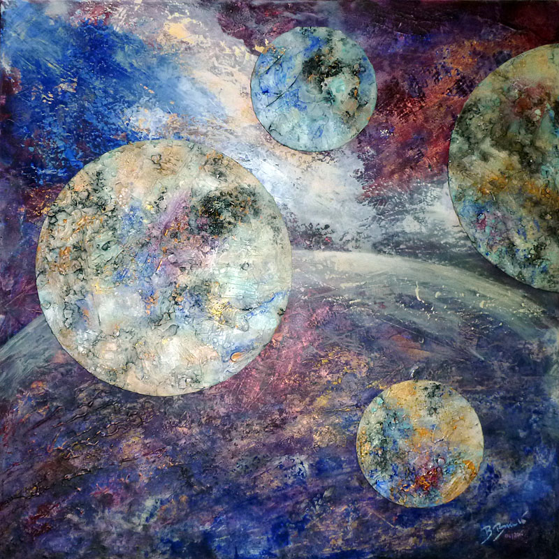 Acryl auf Leinwand, Mixed Media, Lichtinstallation
