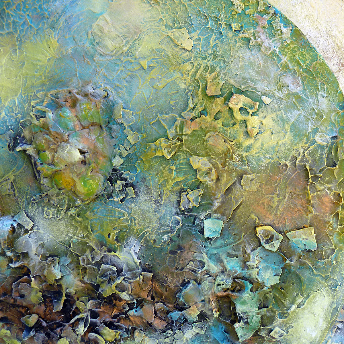 Acrylic paint, putty, fixative, various natural materials