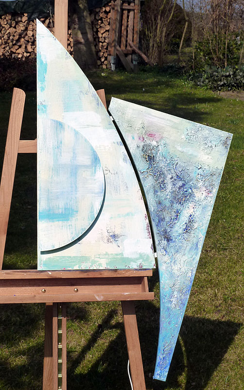 2 canvasses on a frame (curve shape, about 40 x 80 x 1.9 cm)